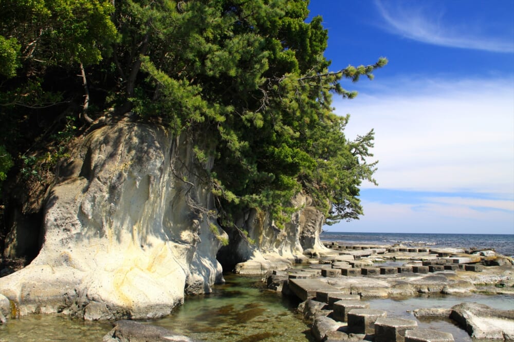 日差しが差し込むと海底まで光が届き、ゆらゆらと揺れる海藻や岩肌の模様が見えるほどの美しさでも知られています。
